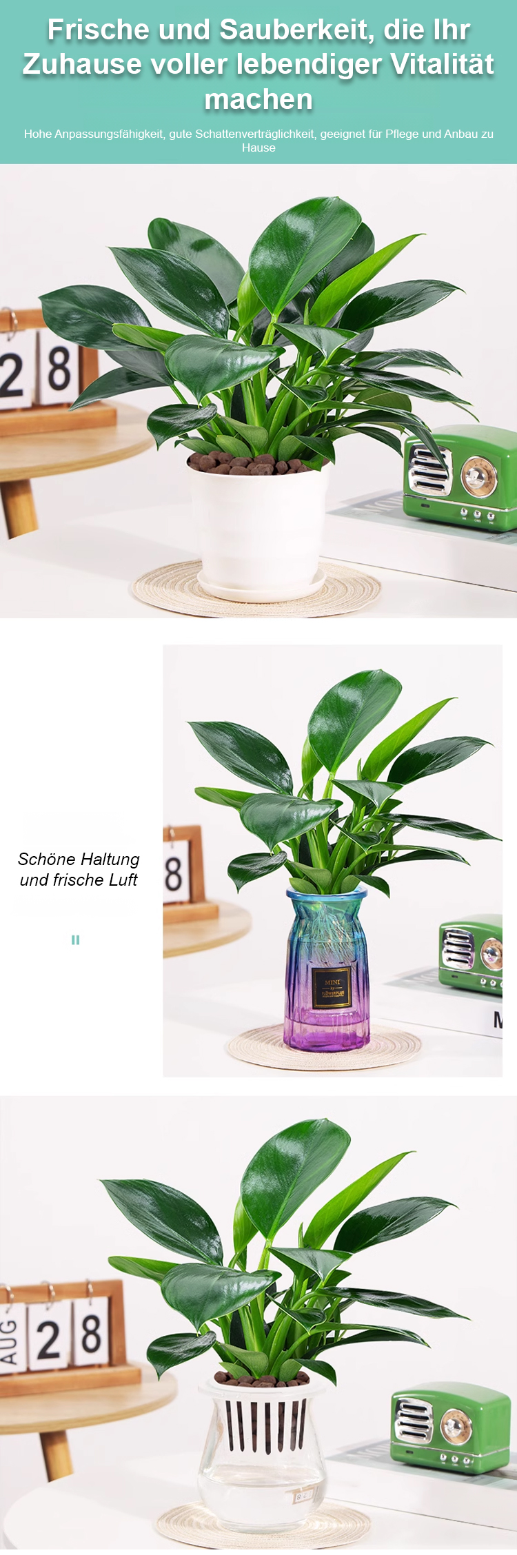 Sie benötigt kein Sonnenlicht und ist pflegeleicht. 💚 Sie absorbiert Formaldehyd, reinigt die Luft und braucht zum Überleben nur Wasser. 👍 Sie verströmt einen frischen Duft und beseitigt unangenehme Gerüche.